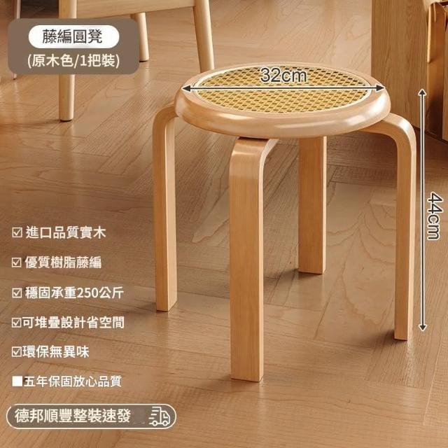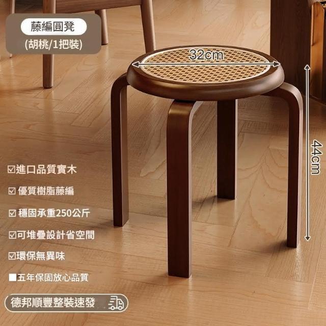 MatsuTa 松太新中式實木凳 高承重 餐椅 餐桌椅 藤編餐椅 簡約凳 家用圓凳 板凳 可疊放餐廳飯店等位 備用椅子