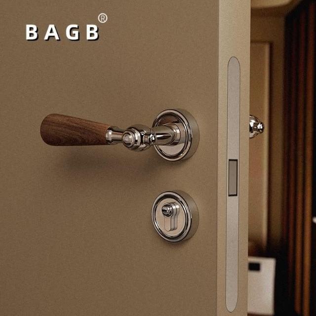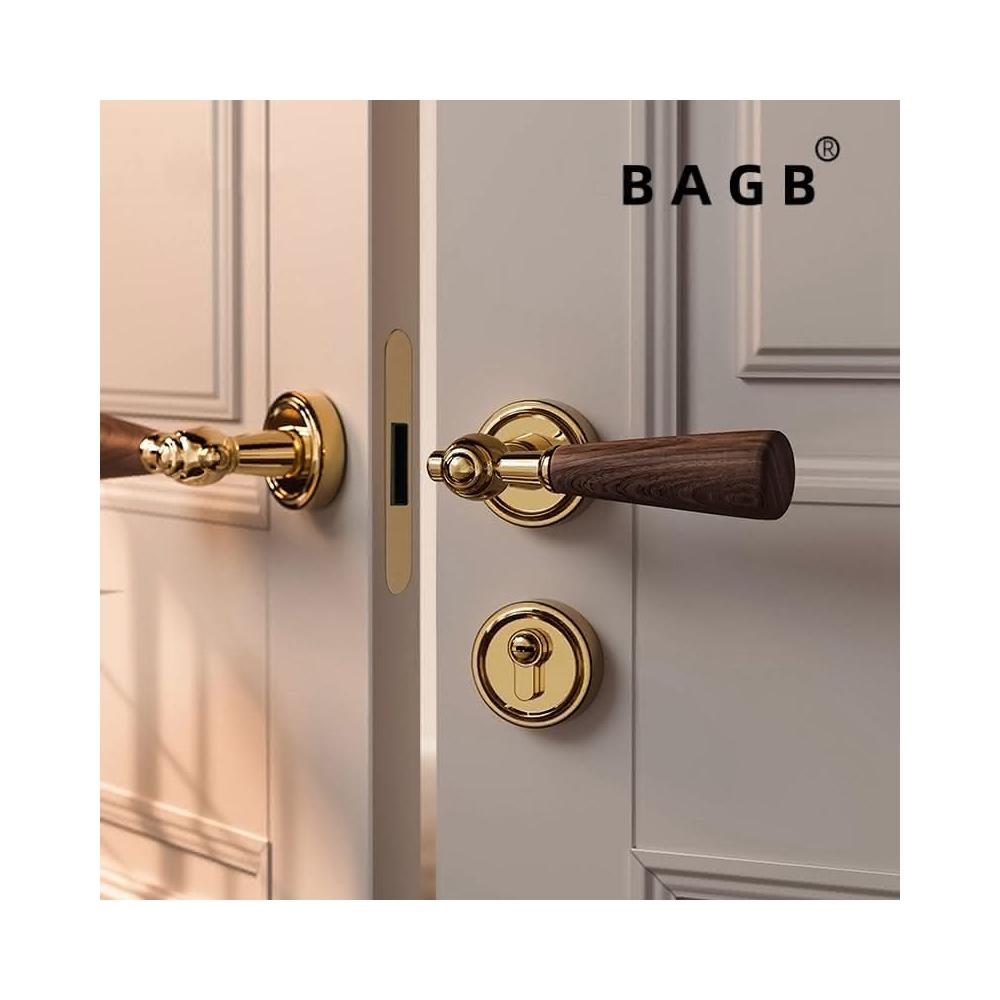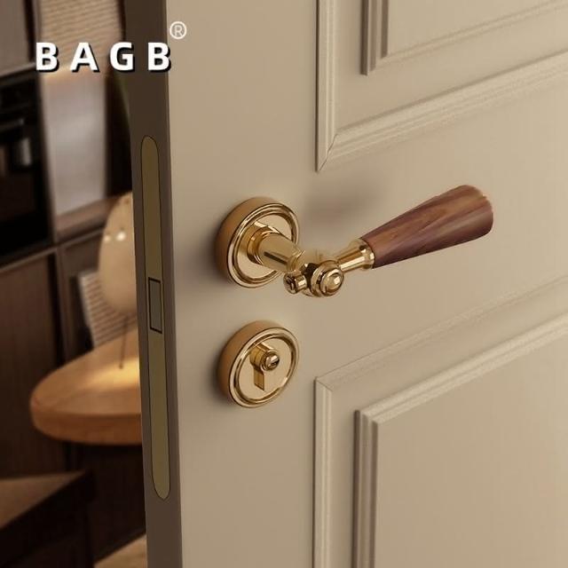 MatsuTa 松太法式門鎖 家用通用型室內胡桃木臥室復古靜音 水平鎖 把手鎖 房間鎖 浴廁鎖 一字鎖 門鎖 門把手 實木把手 房門新中式