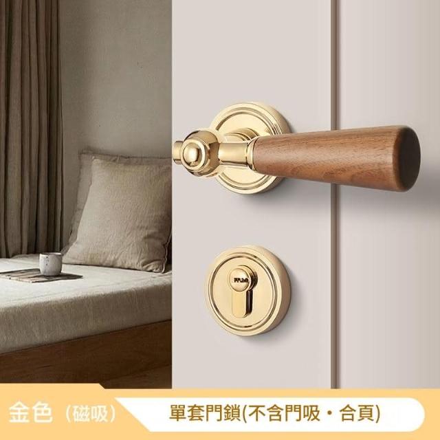 MatsuTa 松太法式門鎖 家用通用型室內胡桃木臥室復古靜音 水平鎖 把手鎖 房間鎖 浴廁鎖 一字鎖 門鎖 門把手 實木把手 房門新中式