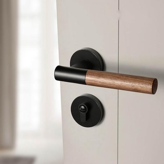 純黑胡桃實木木門鎖 手感舒適