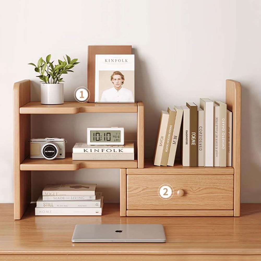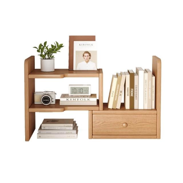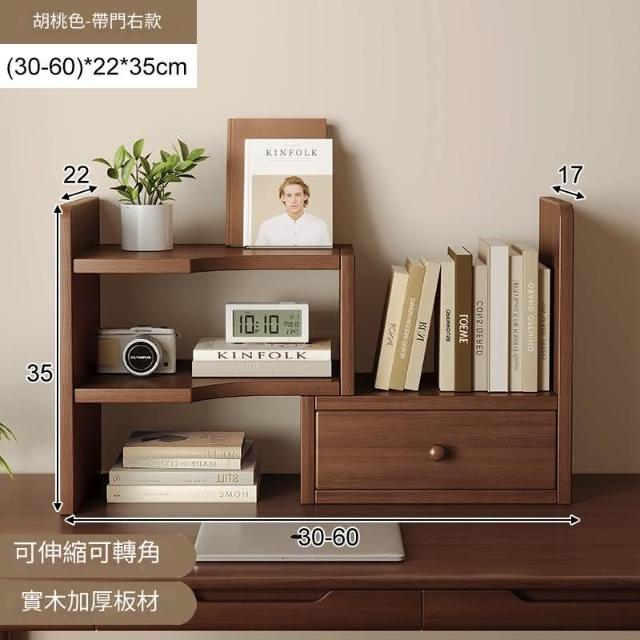 MatsuTa 松太全實木桌面書架 加厚木材 可伸縮置物架 桌上小櫃 桌山收納 辦公室收納 改造神器 書桌分層伸縮小書櫃 可伸縮帶櫃門