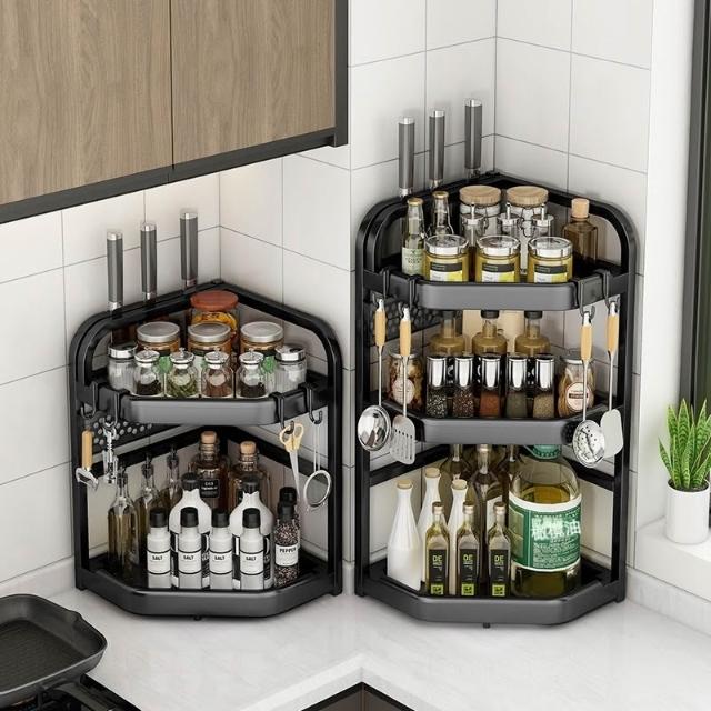 MatsuTa 松太廚房多功能置物架 轉角置物架 免打孔 調料架 筷筒 刀架 主廚收納 廚房收納 檯面角落 三角調味架 轉角收納
