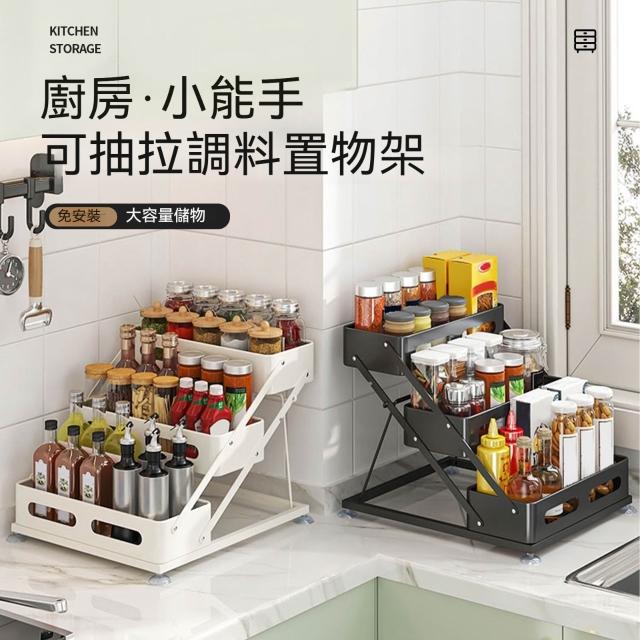 MatsuTa 松太廚房調味架 三層置物架 可調節高度 調味品置物架 檯面 家用卡扣式油鹽醬醋佐料收納架