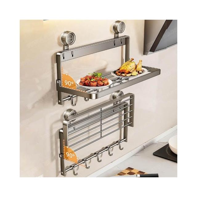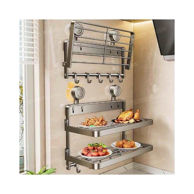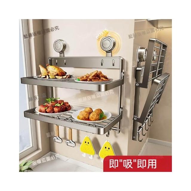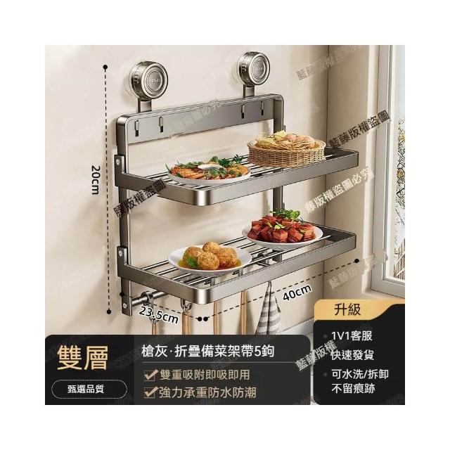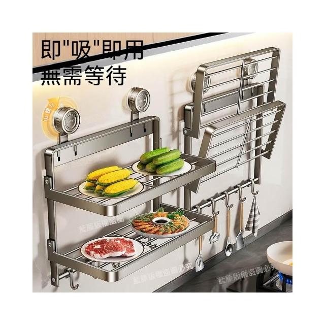 MatsuTa 松太廚房備菜置物架 壁掛置物架 浴室置物架 厠所置物架 可折疊 吸盤加固 免打孔安裝多功能家用免打孔 壁掛式多層配菜放菜架