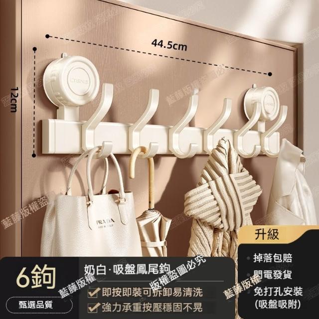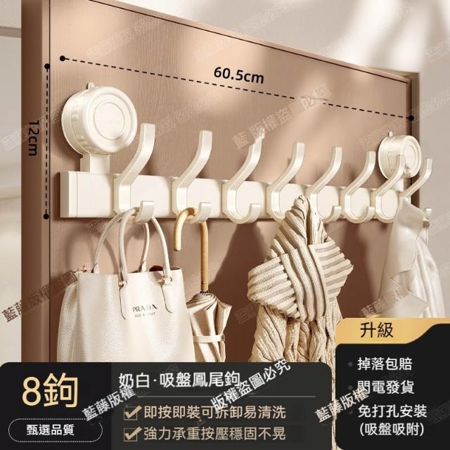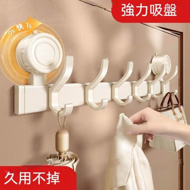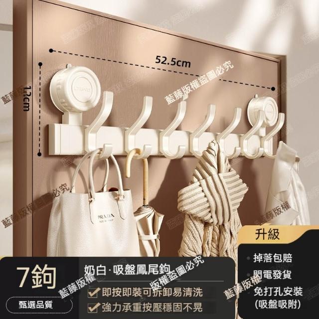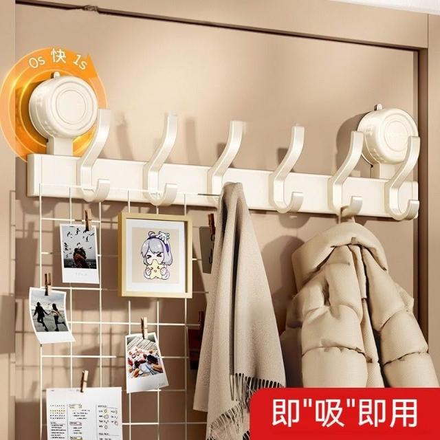 MatsuTa 松太門後掛鉤 免打孔 門後一排強力承重掛鉤 掛衣架 吸盤式免釘免膠 太空鋁材質 浴室掛鈎 入戶門浴室毛巾 廚房掛鉤