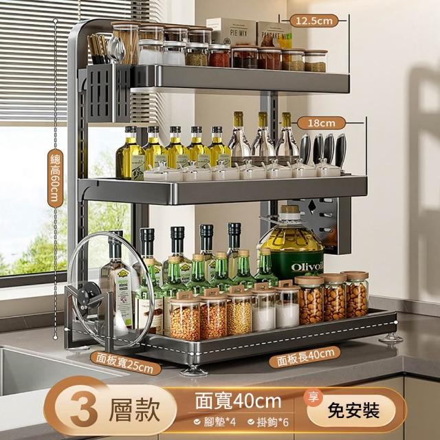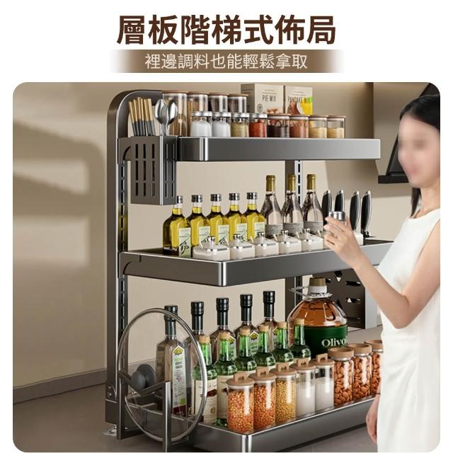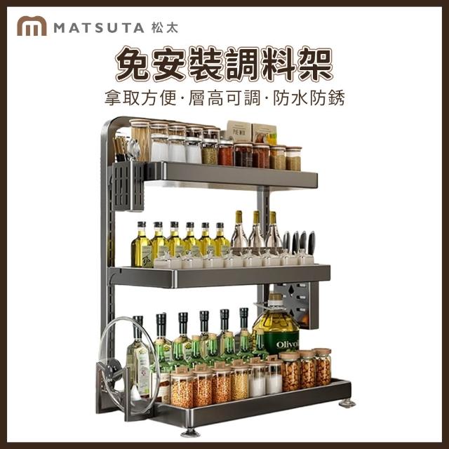 MatsuTa 松太家用廚房免安裝調味料架 調料架 可調層高 特調碳鋼材質 多功能調味料置物架 筷子架 刀架