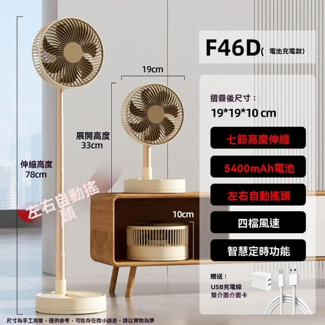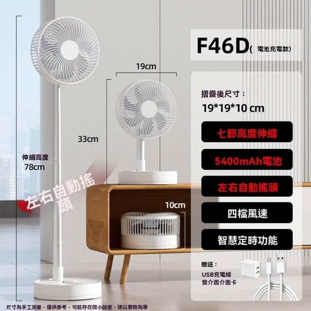 MatsuTa 松太卡西道夫 8 吋 折疊風扇 伸縮落地扇 搖頭 USB 充電 靜音 便攜 桌面風扇 戶外露營小風扇