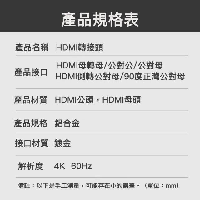 日日優品 HDMI 延長器 轉接器 中繼器 延伸器 90度 L型 轉接頭 公對母 母對母 對接頭 延長頭 轉換 4K