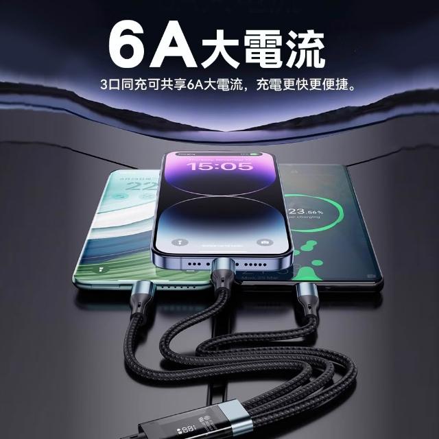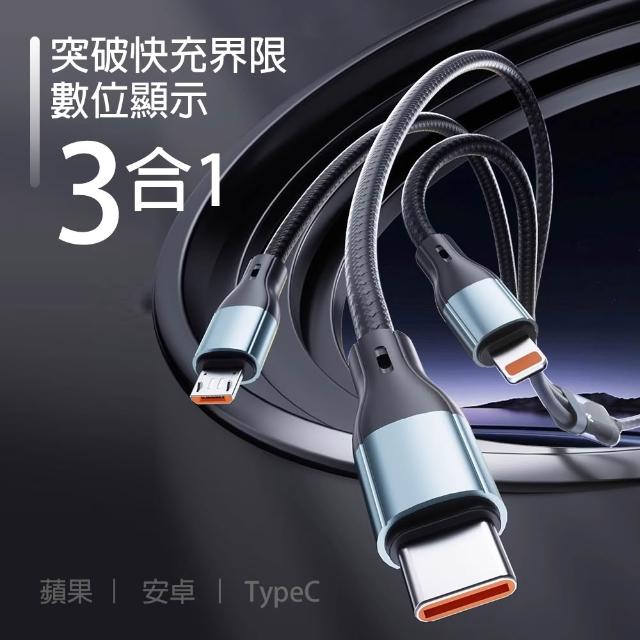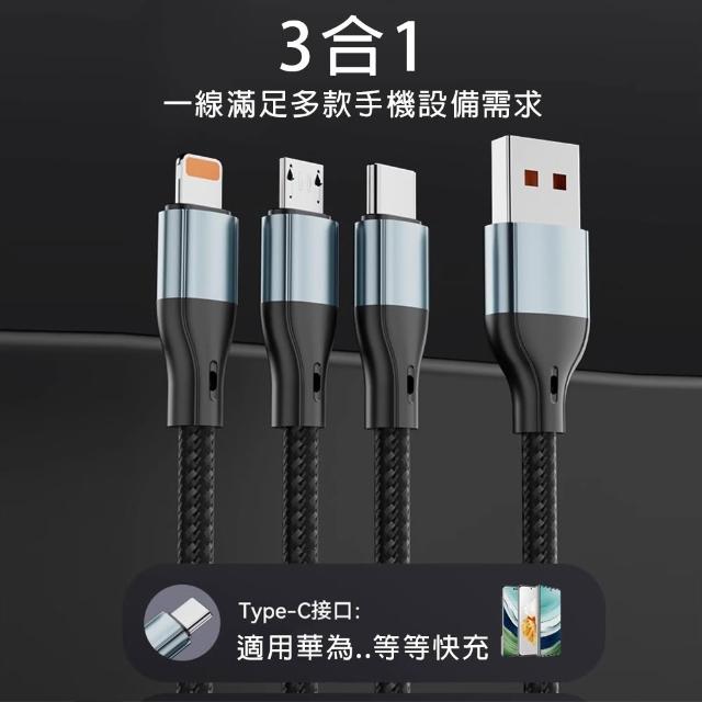 日日優品 6A編織快充線 100W 一拖三 充電線 傳輸線 蘋果 安卓 TypeC 數據線 快充 手機充電 編織充電