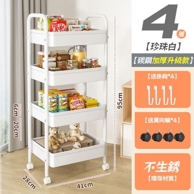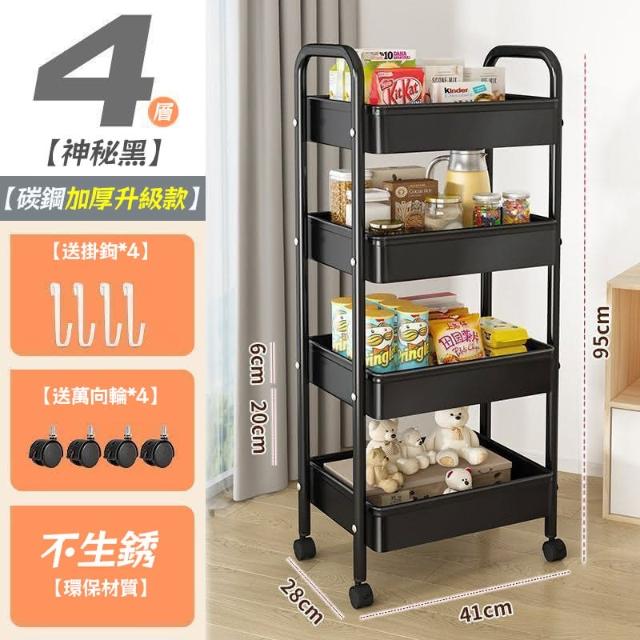 升級款💥加厚全鐵💥臺灣現貨 小推車置物架 鐵質 廚房置物架 多用途儲物架(移動儲物架 廚房收納架 落地多層收納架)