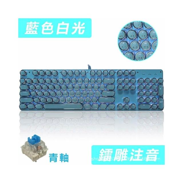 復古朋克鍵盤 機械鍵盤 有線鍵盤 白色背光 繁體鍵盤 倉頡注音鍵盤 全鍵無衝 可換鍵軸、鍵帽 電競 遊戲鍵盤