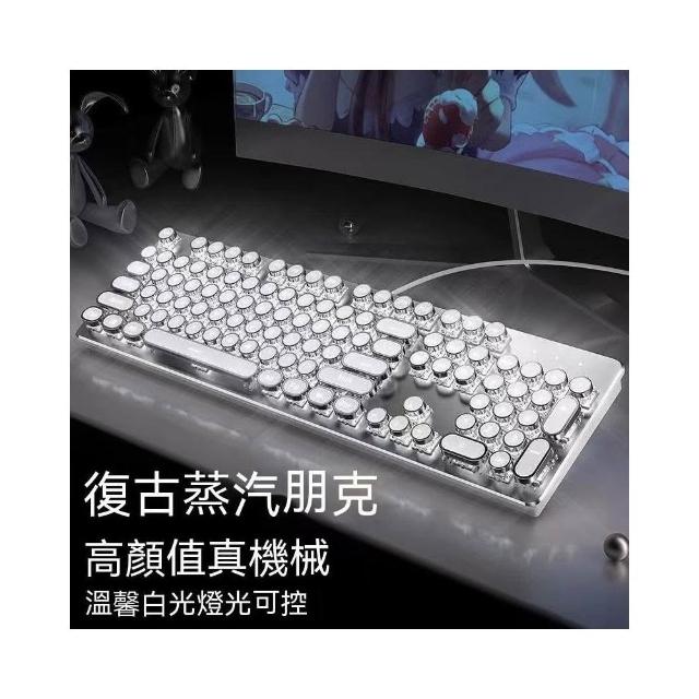 復古朋克鍵盤 機械鍵盤 有線鍵盤 白色背光 繁體鍵盤 倉頡注音鍵盤 全鍵無衝 可換鍵軸、鍵帽 電競 遊戲鍵盤