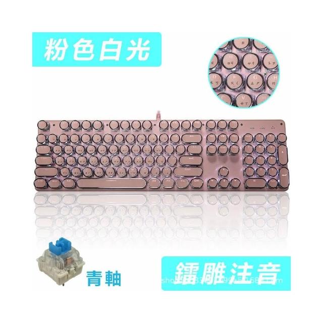 復古朋克鍵盤 機械鍵盤 有線鍵盤 白色背光 繁體鍵盤 倉頡注音鍵盤 全鍵無衝 可換鍵軸、鍵帽 電競 遊戲鍵盤
