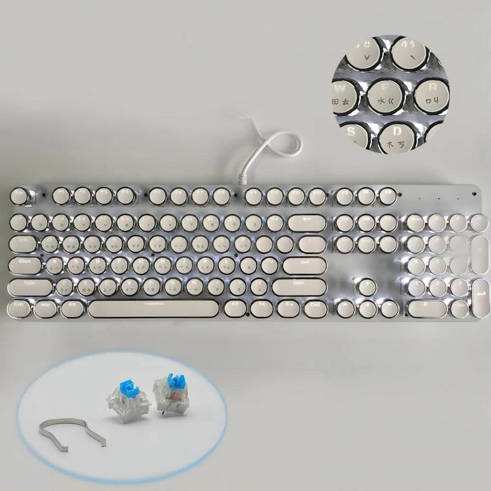 復古朋克鍵盤 機械鍵盤 有線鍵盤 白色背光 繁體鍵盤 倉頡注音鍵盤 全鍵無衝 可換鍵軸、鍵帽 電競 遊戲鍵盤