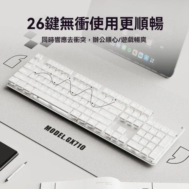 前行者 GX710 中文注音 有線鍵盤 白色背光 靜音 超薄 多種燈效 水滴鍵帽 簡約時尚 辦公鍵盤 靜音鍵盤