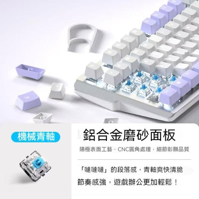 台灣現貨 夢幻紫色機械鍵盤 22種燈光特效 人體工學設計 自定義呼吸燈 遊戲鍵盤 女生鍵盤 電競遊戲 青軸 紅軸