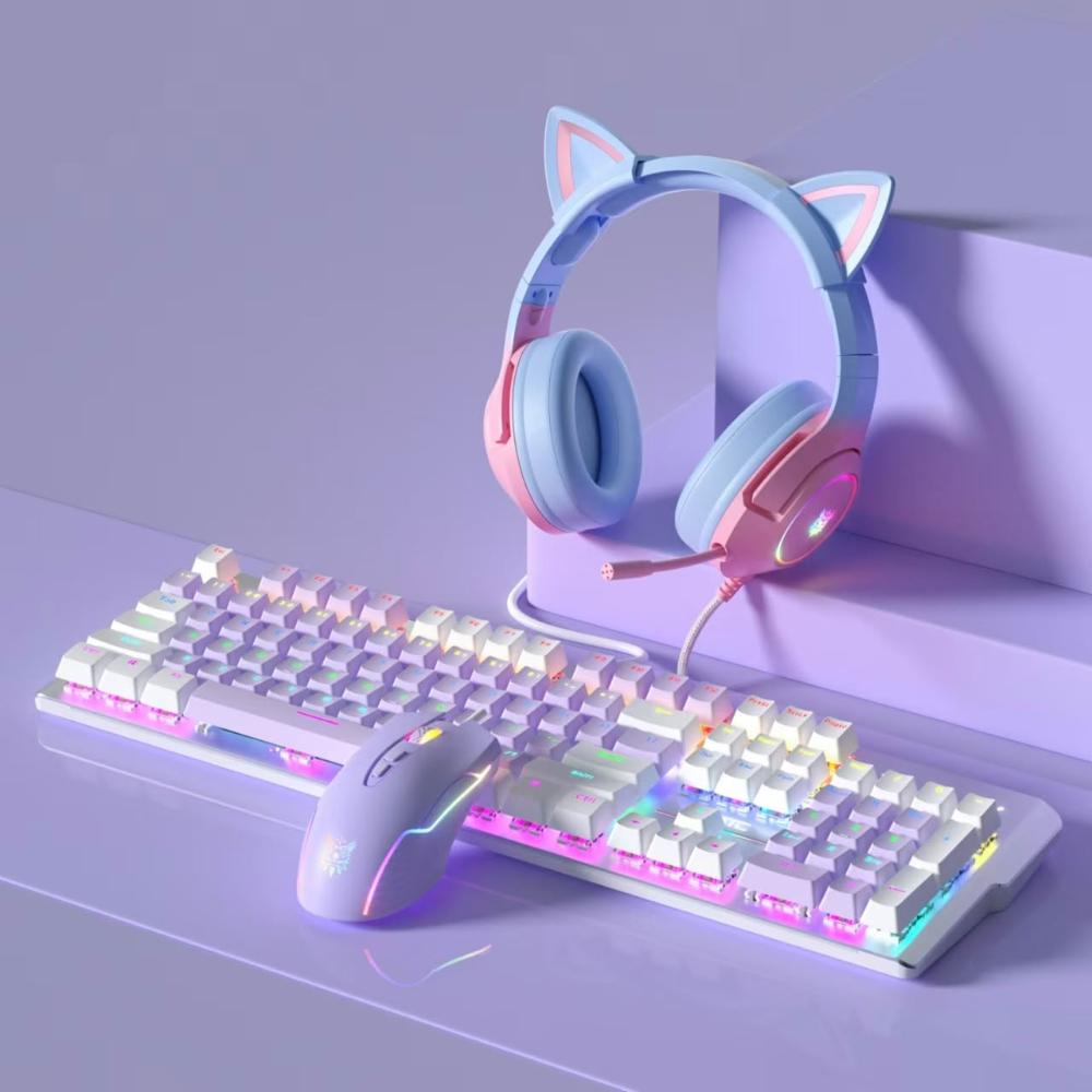 台灣現貨 夢幻紫色機械鍵盤 22種燈光特效 人體工學設計 自定義呼吸燈 遊戲鍵盤 女生鍵盤 電競遊戲 青軸 紅軸
