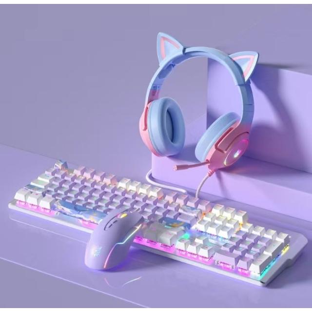 台灣現貨 夢幻紫色機械鍵盤 22種燈光特效 人體工學設計 自定義呼吸燈 遊戲鍵盤 女生鍵盤 電競遊戲 青軸 紅軸