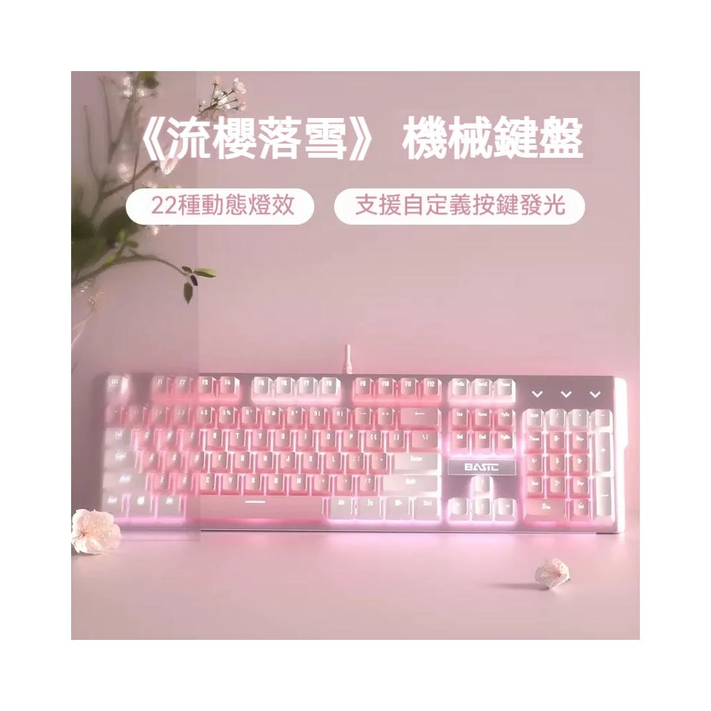 台灣現貨 櫻花粉色機械鍵盤 22種燈光特效 人體工學設計 自定義呼吸燈 遊戲鍵盤 女生鍵盤 電競遊戲 青軸 紅軸