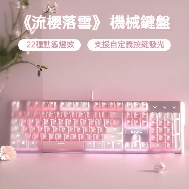 倉頡注音 櫻花粉色機械鍵盤 22種燈光特效 人體工學設計 自定義呼吸燈 遊戲鍵盤 女生鍵盤 電競遊戲 青軸 紅軸