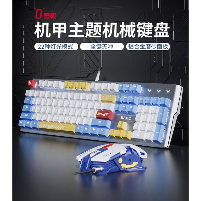 倉頡注音 機甲藍機械鍵盤 22種燈光特效 人體工學設計 自定義呼吸燈 遊戲鍵盤 電競遊戲 電競套裝 青軸 茶軸