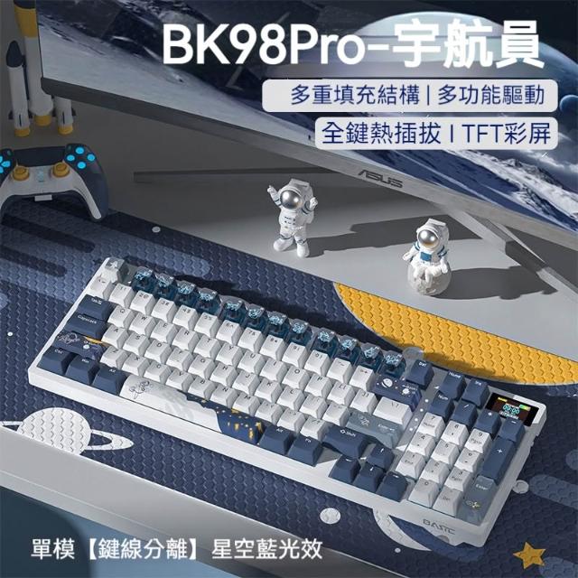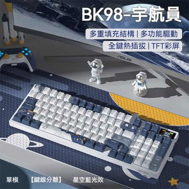 本手BK98 星空主題 有線機械鍵盤 RGB背光 客制化鍵軸 帶彩屏 自定義屏保 鍵線分離 支援雙系統