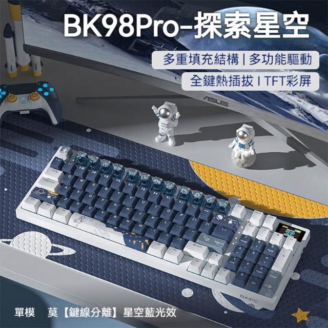 本手BK98 星空主題 有線機械鍵盤 RGB背光 客制化鍵軸 帶彩屏 自定義屏保 鍵線分離 支援雙系統
