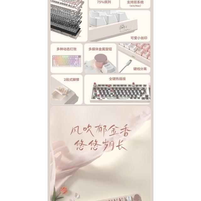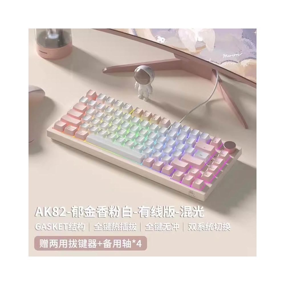 新品促銷 本手AK82 鬱金香拼色 有線機械鍵盤 背光鍵盤 鍵線分離 女生鍵盤 靜音鍵盤 支援雙系統 美觀 女生禮物