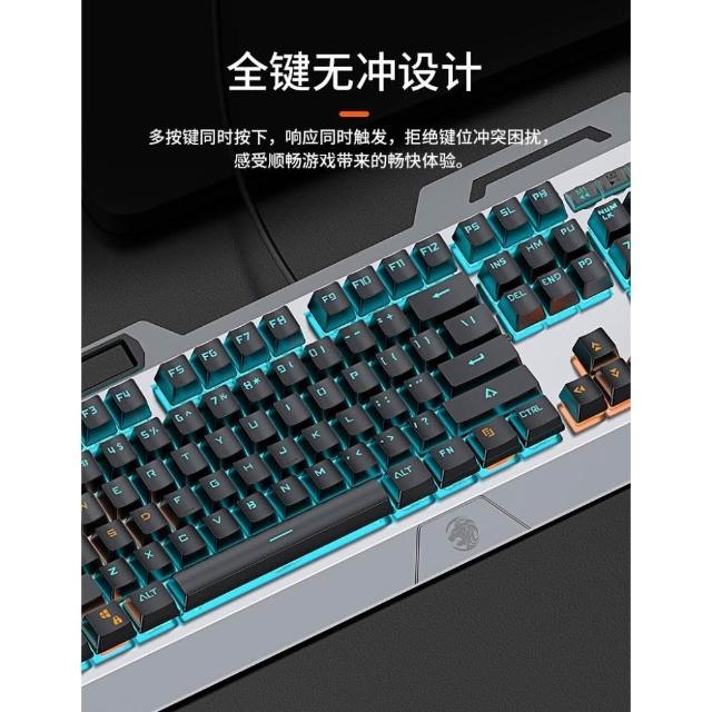 臺灣現貨 前行者TK900 機械鍵盤 電競遊戲鍵盤 34鐘燈效 全鍵無衝 多功能旋鈕 背光鍵盤 鍵盤滑鼠組 青軸、茶軸
