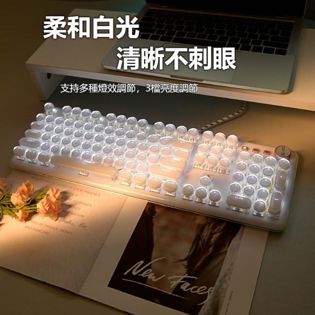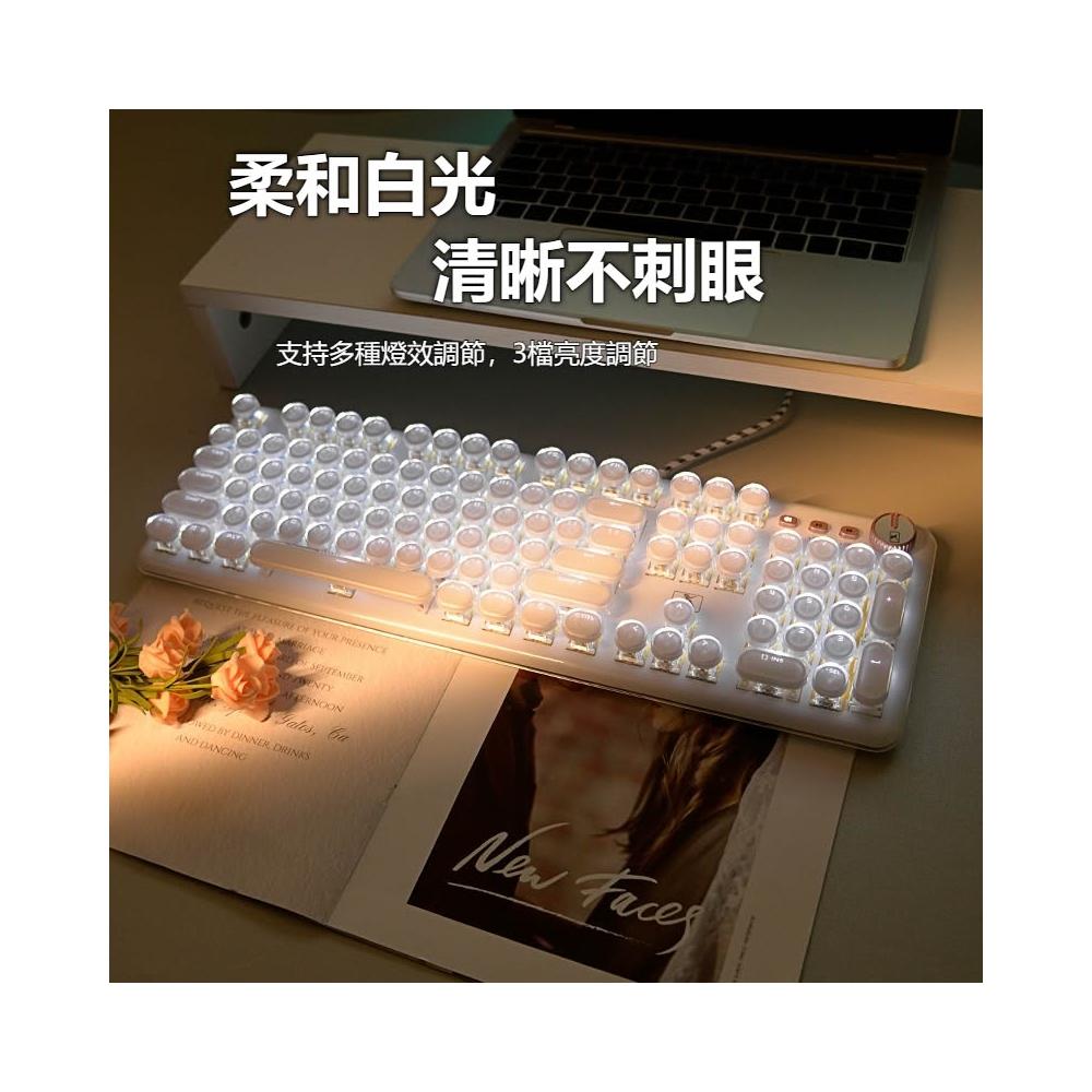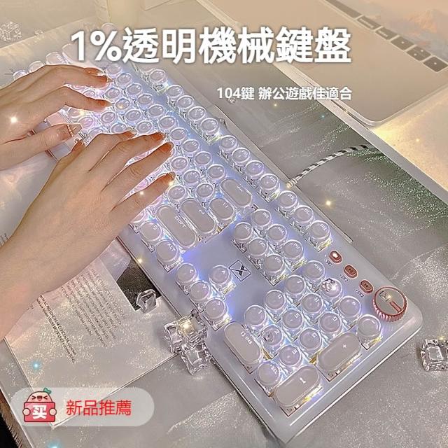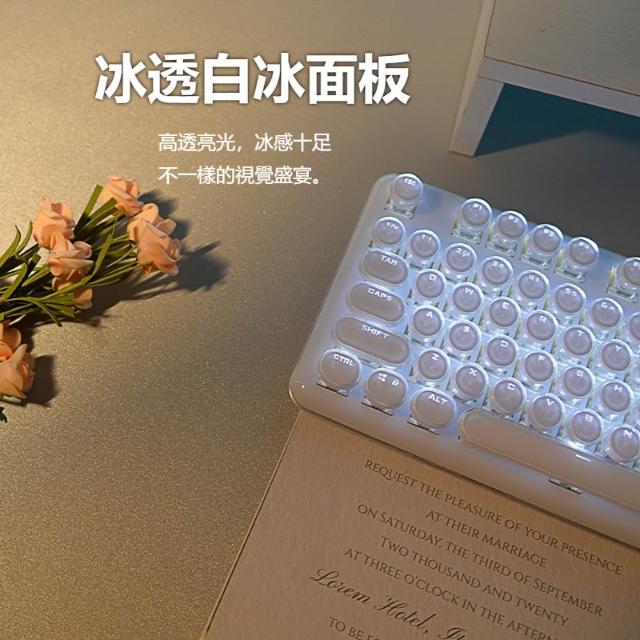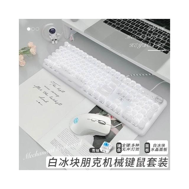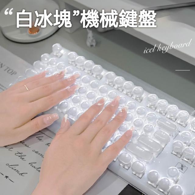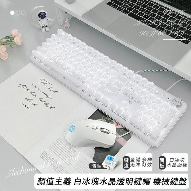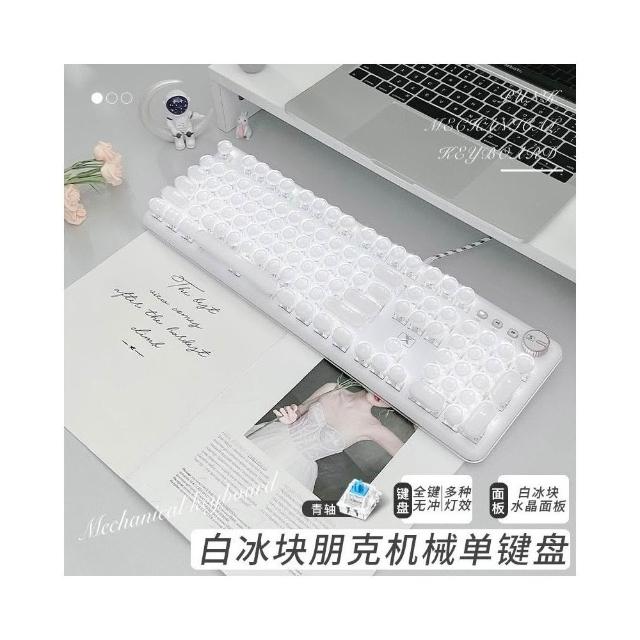 前行者K520 白冰塊朋克鍵盤 有線鍵盤 水晶透明機械鍵盤 白色白光 青軸 遊戲 辦公 簡約美觀 機械鍵盤