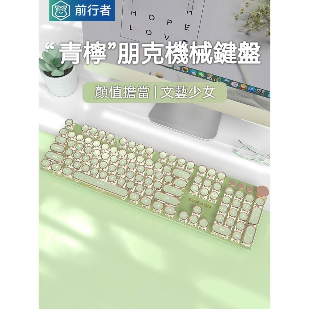 台灣出貨 前行者V20朋克機械鍵盤 電競遊戲鍵盤 有線蒸汽朋克 玫瑰金電鍍鍵帽 蜜粉軸 女生禮物 辦公鍵盤 情侶適用
