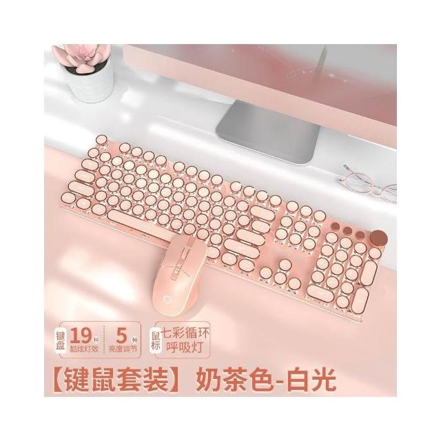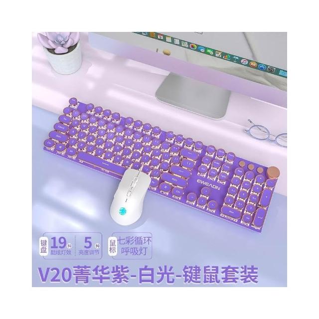 台灣出貨 前行者V20朋克機械鍵盤 電競遊戲鍵盤 有線蒸汽朋克 玫瑰金電鍍鍵帽 蜜粉軸 女生禮物 辦公鍵盤 情侶適用