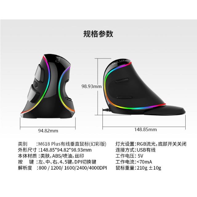 Delux 多彩 M618 plus垂直滑鼠 人體工學滑鼠 直立滑鼠 人體工學蝸式 RGB防滑鼠手 有線滑鼠 無線滑鼠