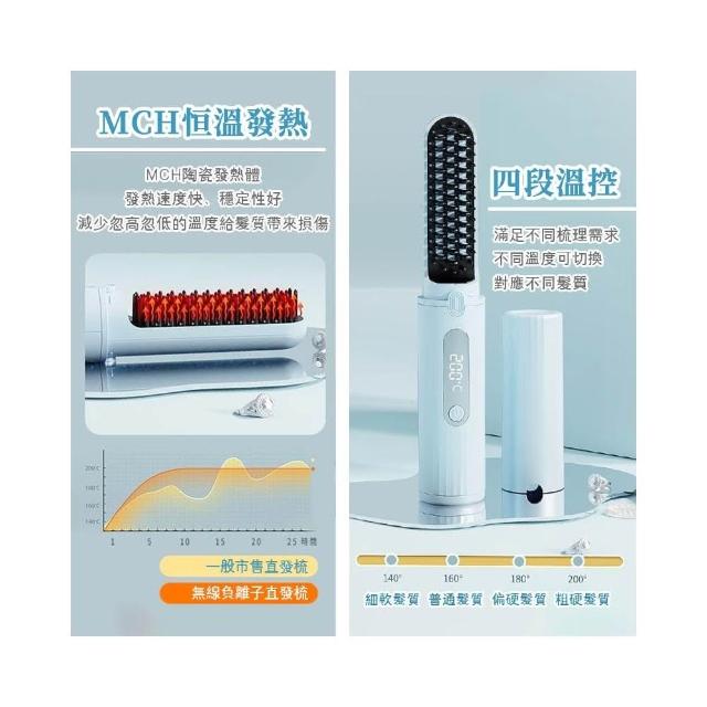 直捲兩用梳 無線直髮梳 負離子便攜直髮梳 離子夾迷你 行動式直髮梳 直板夾 直髮夾(負離子直髮梳 離子夾 直髮梳)