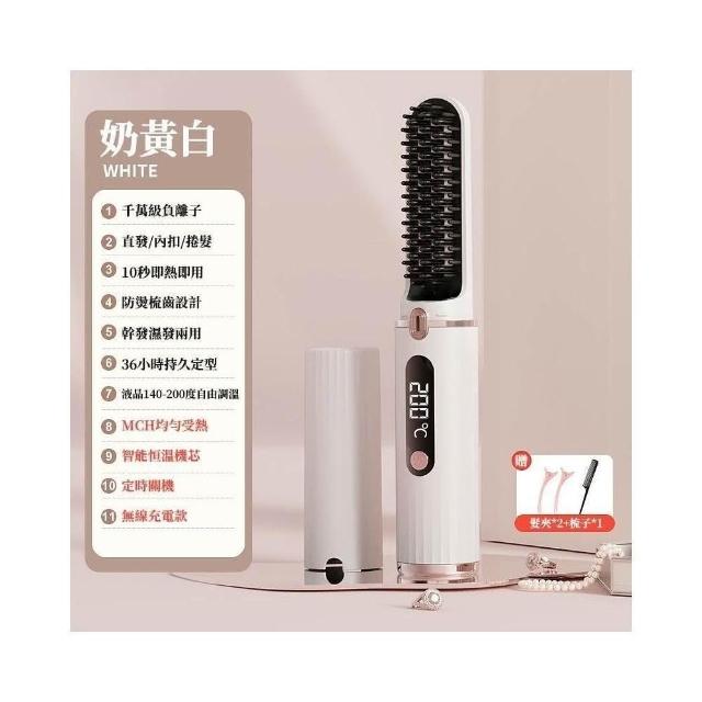 直捲兩用梳 無線直髮梳 負離子便攜直髮梳 離子夾迷你 行動式直髮梳 直板夾 直髮夾(負離子直髮梳 離子夾 直髮梳)