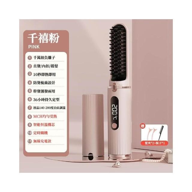 直捲兩用梳 無線直髮梳 負離子便攜直髮梳 離子夾迷你 行動式直髮梳 直板夾 直髮夾(負離子直髮梳 離子夾 直髮梳)
