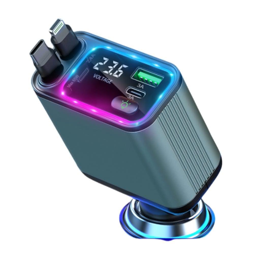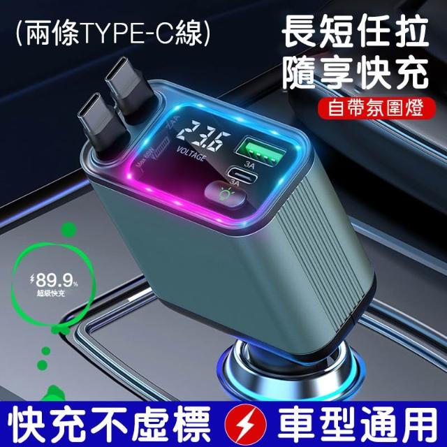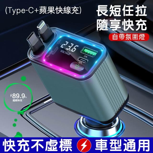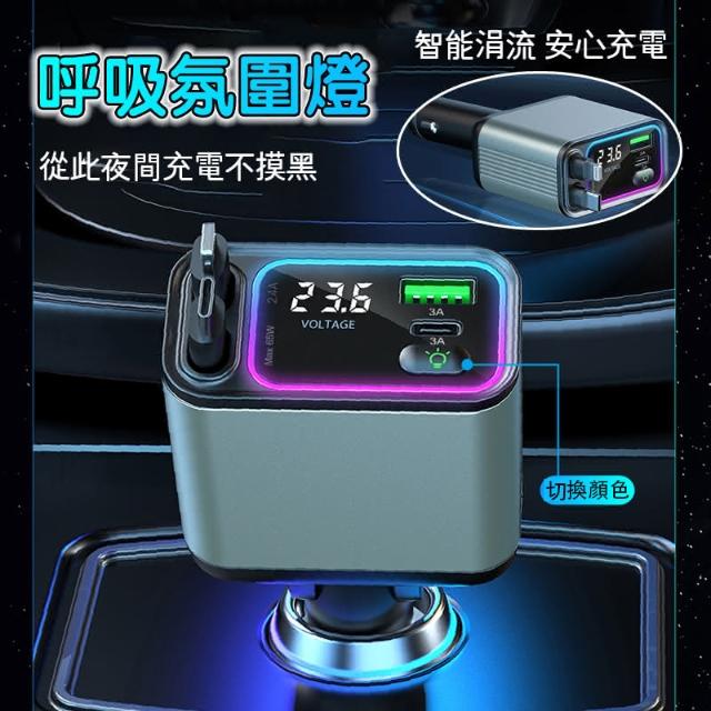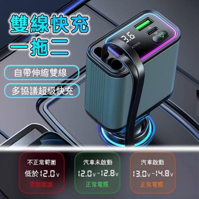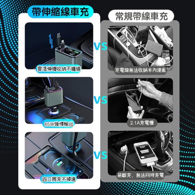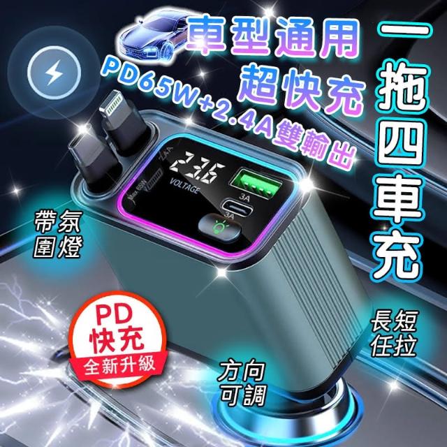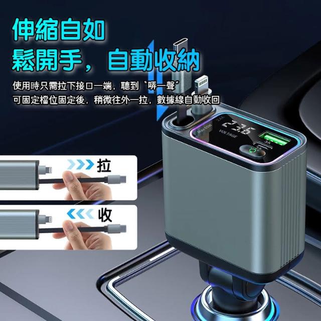 車用充電器 伸縮車充 伸縮充電線 車用快充 自帶線車充 一拖四車充 車用充電座 線長80cm 快充