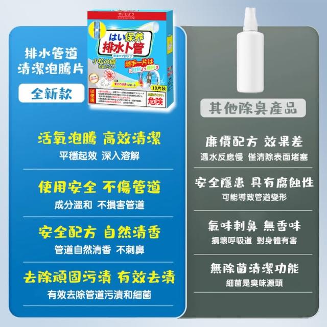 日製水管清潔 泡騰片10入裝⚡隔日達 根源除臭✨不傷管道 管道疏通劑 水管疏通劑 排水管分解劑 下水道除臭油污清潔