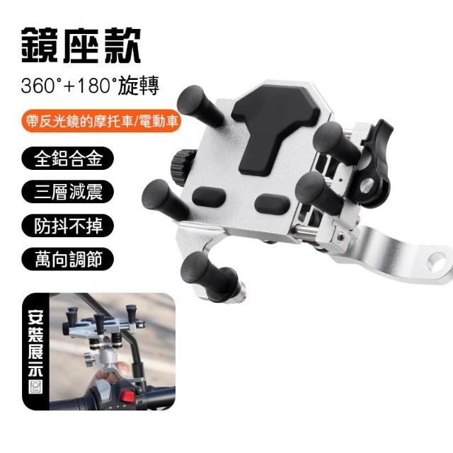 台灣現貨 最新540°旋轉👍單手雙向緊鎖 減震機車支架 萬能機車手機架 機車導航支架 騎行支架 外送員手機架 五匹手機架