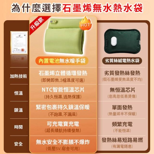 台灣現貨💥【智能溫控】石墨烯暖手袋 暖手袋 發熱暖手寶 暖手寶 熱敷袋 無水暖手袋 護膝暖宮 暖手暖肚暖腰袋