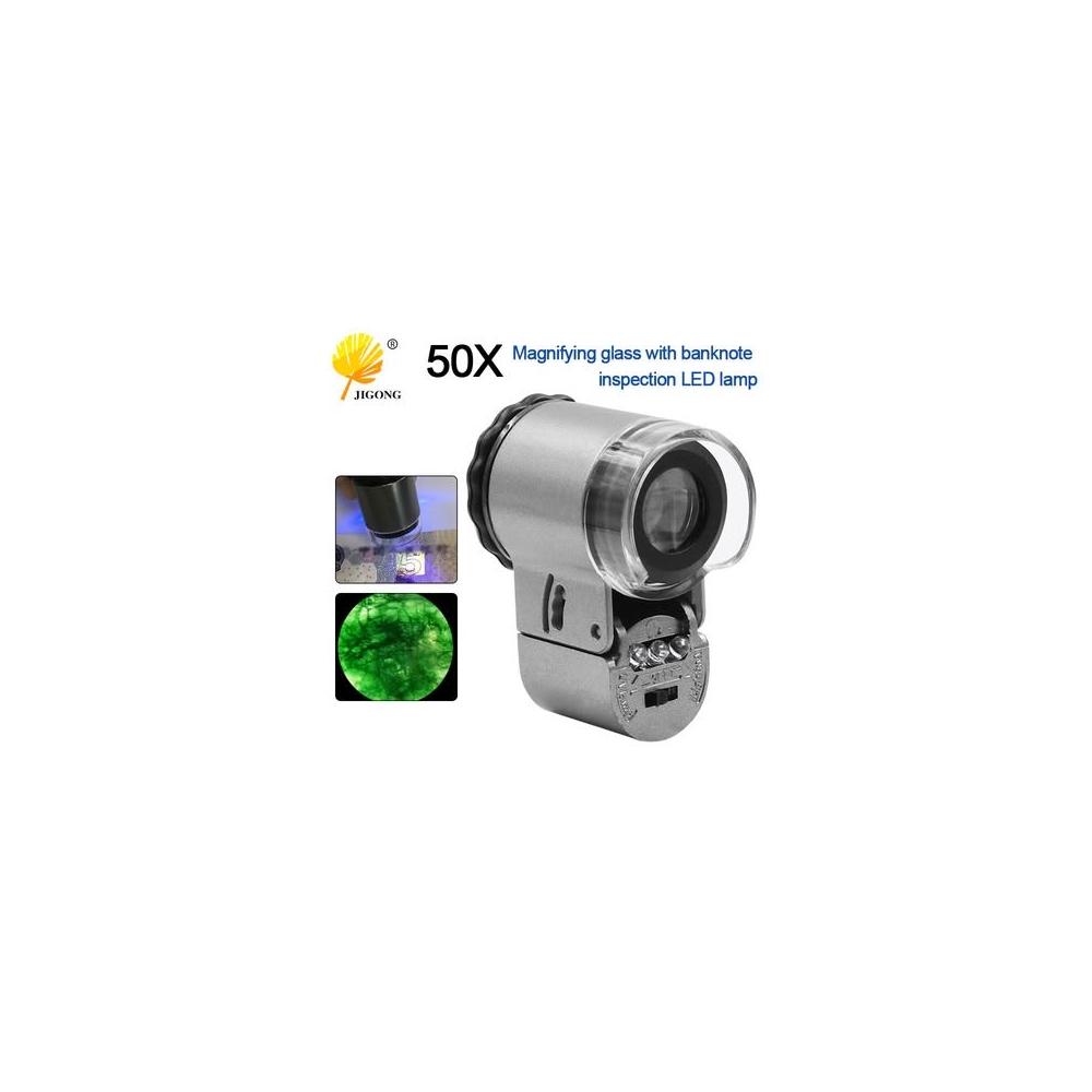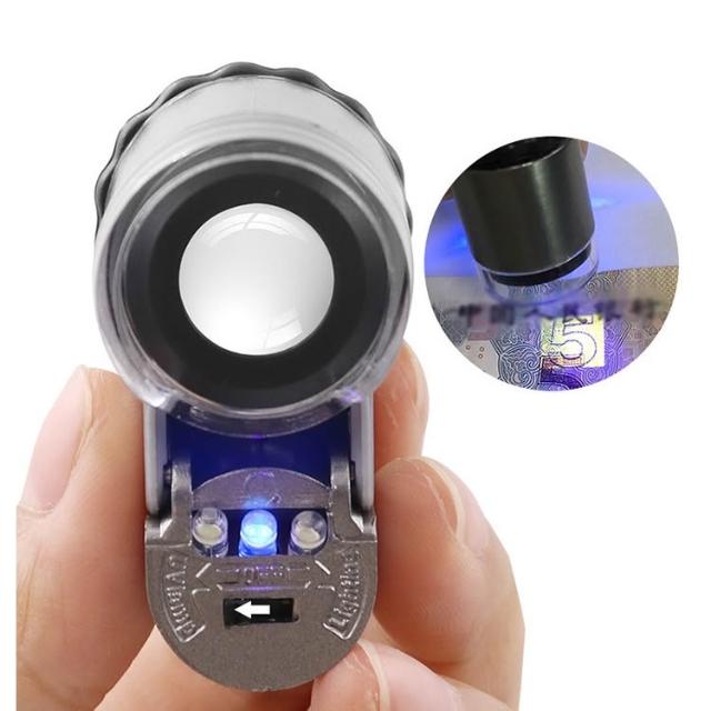 極光商城-珠寶鑑定50倍放大鏡看玉石珠寶古玩迷你顯微鏡帶LED燈帶UV驗鈔燈