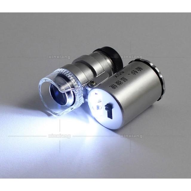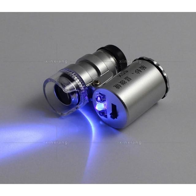 極光商城-60倍珠寶LED燈UV驗鈔便攜口袋式顯微鏡鑑定古玩玉器茶葉放大鏡