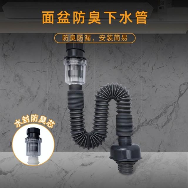 極光商城-洗手盆下水管防臭排水管塑料軟管洗臉盆衛生間面盆台盆下水器配件