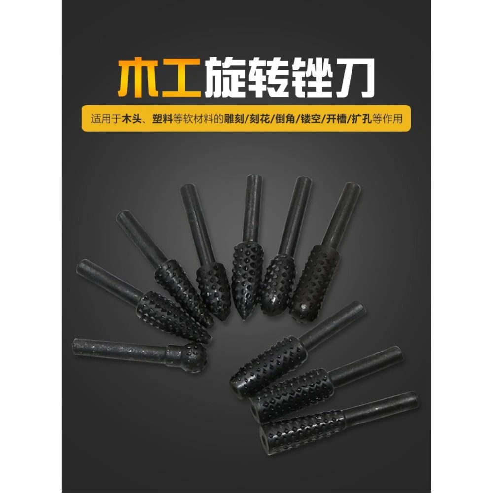 極光商城-電動旋轉銼刀木雕根雕銑刀工具雕刻刀木工打磨頭10件套裝