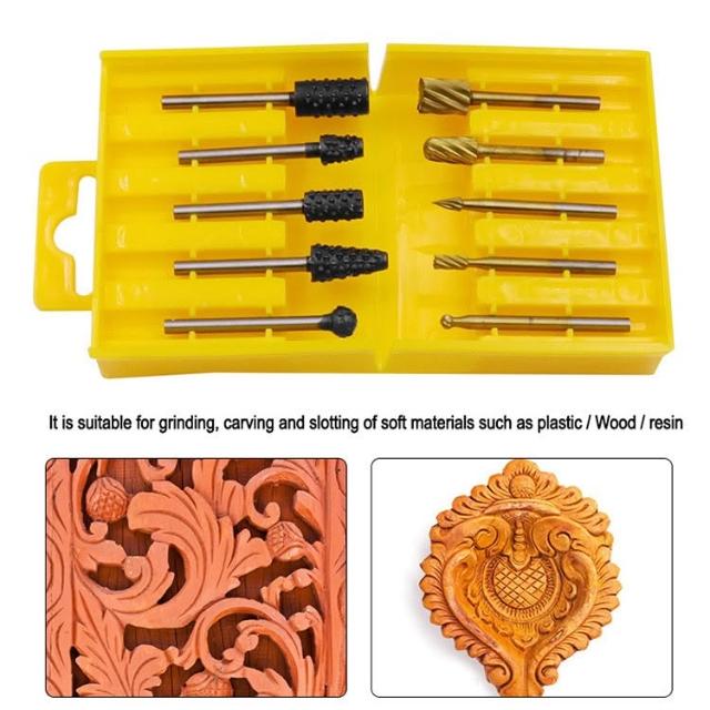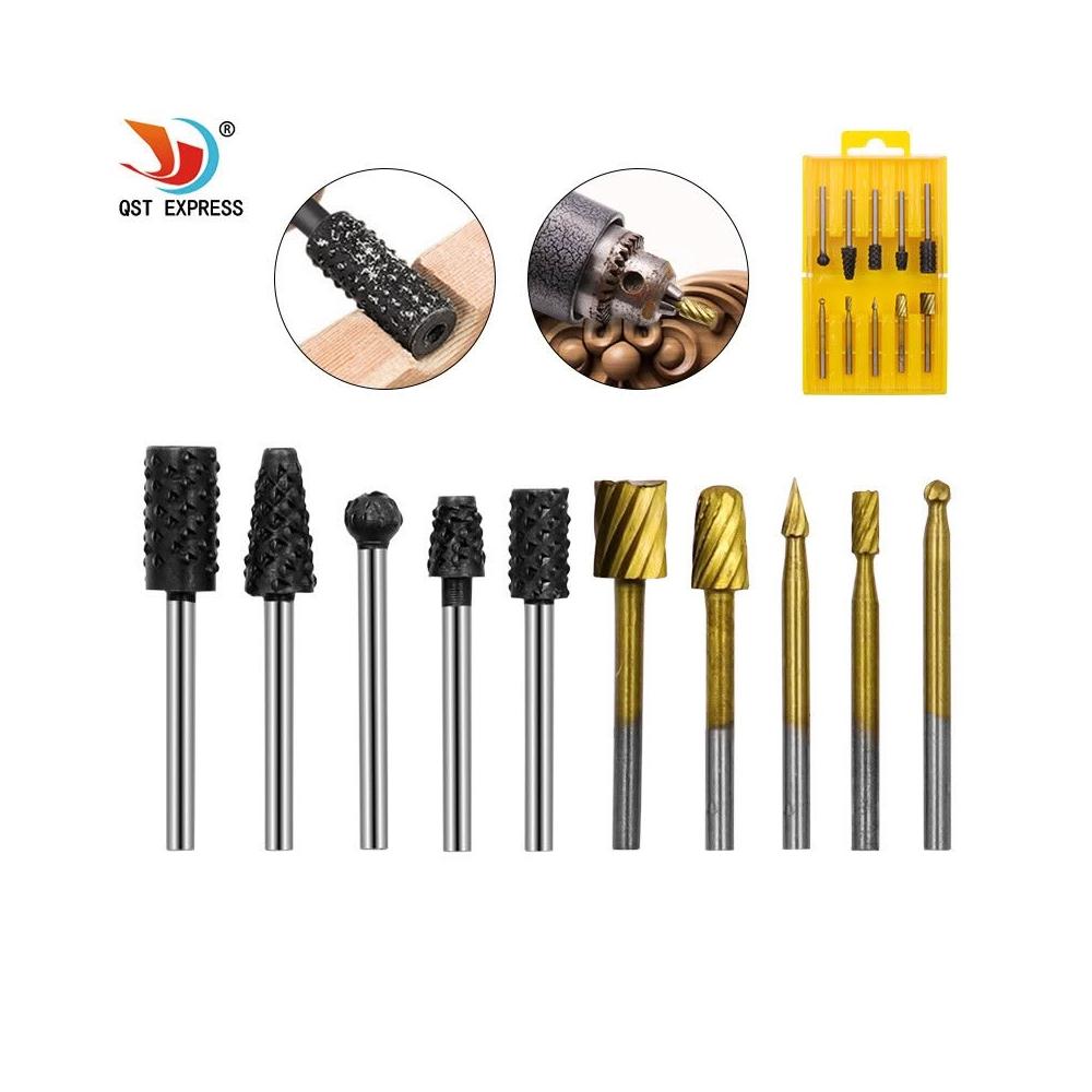 極光商城-10件套高速鋼旋轉銼木工製作DIY根雕電磨打磨頭雕刻銑刀修邊刀