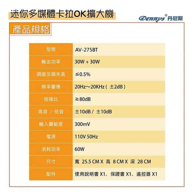 DennysDennys USB/FM/SD/MP3迷你藍牙擴大機(AV-275BT)
