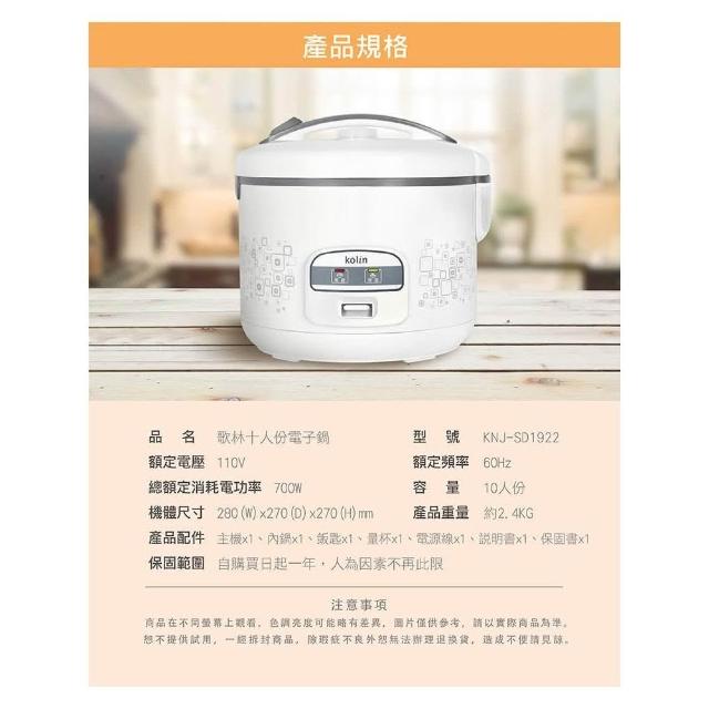 Kolin 歌林 十人份電子鍋KNJ-SD1922
