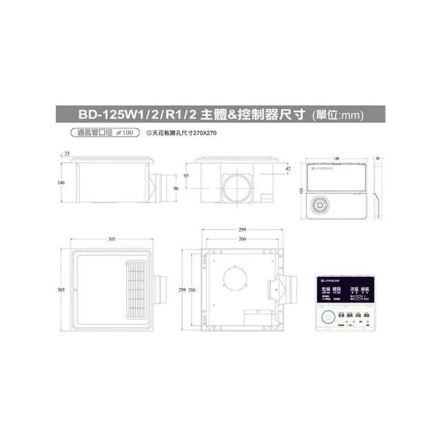 Lifegear 樂奇浴室暖風機|BD-125W1/BD-125W2/BD-125R1/BD-125R2 暖風乾燥機 浴室暖風機 排風 涼風