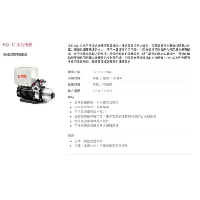 ✨木川 ✨變頻恆壓泵 KQ800IC KQ800NIC KQ800SIC 加壓馬達 加壓機 電腦變頻 加壓泵浦