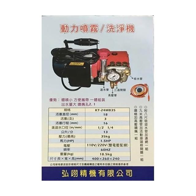 弘翊精機 加倍大 【KT-24MB2 1HP】 高壓清洗機 洗車機 洗淨機 【KT-24MB35 1.5HP】噴霧機